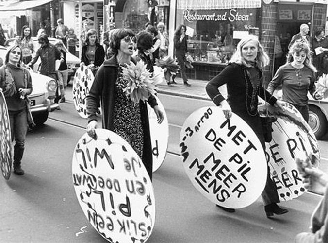 Of zoals Dolle Mina in oktober 1970 tijdens een demonstratie in Amsterdam op grote papieren pillen schreef: ‘Slik een pil en doe wat je wil’.