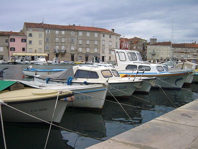 CRES (Kroatië) Nu ik er weer geweest ben, weet ik zeker dat het stadje Cres tot mijn favoriete plekjes aan de Kroatische kust hoort. Het haventje is tot de laatste plaats bezet met kleine bootjes. De huizen langs de kade hebben de mooiste kleuren. Daarachter staan de middeleeuwse wachttorens aan de rand van het stadje.