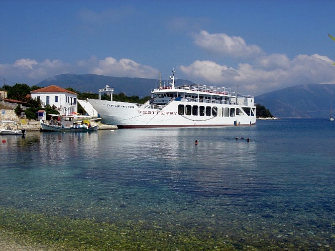 KEFALONIA (Griekenland) Toen we nog maar net met de veerboot Captain Aristides van Levkas vertrokken waren, begreep ik dat mijn voorbereiding op Kefalonia slecht geweest was. Twee echtparen hadden elkaar op het bovendek van de veerboot ontmoet en wisselden de plaatsen van Kapitein Corelli's mandoline uit die ze gingen bezoeken. Ik had nauwelijks iets van Kapitein Corelli onthouden.