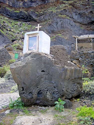 EL HIERRO (Canarische Eilanden) Sinds in de zomer van 2003 de tunnel door de rotswand Risco de Tibataje naar beneden geopend is, rijd je in een kwartier van Valverde naar El Golfo en kom je in een deel van El Hierro waar je vroeger niet hoefde te zijn. In Mocanal slaan we het weggetje naar Pozo de las Calcosas in.