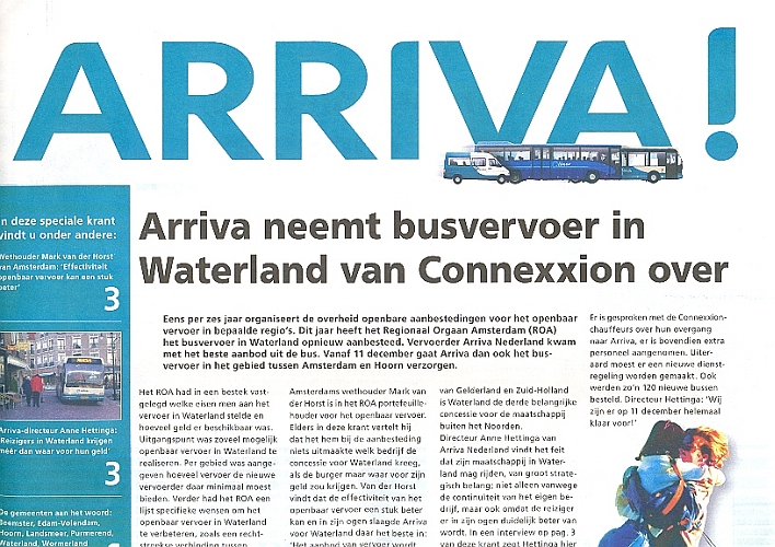 ARRIVA-KRANT opdracht: eindredactie publiekskrant opdrachtgever: Arriva Nederland